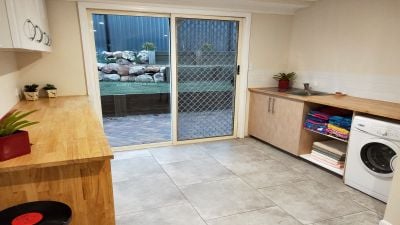 The kitchen is a chef's delight and hosts a suite of quality appliances including dishwasher, wall oven and range hood and boasts an oversized breakfast bench.