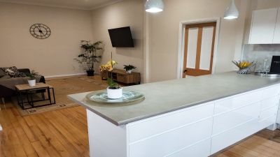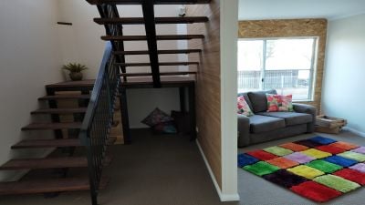 The interior of the lower level is accessed via the contemporary internal staircase and also features a spacious open plan living room along with an additional queen-sized bedroom complete with walk-in robe and stylish ensuite. The kitchenette/laundry offers plenty of bench and cupboard space and ideally offers external access. Additionally there is a large room which would make a perfect home office or art studio as it offers external access. This level is perfect for those looking for a dual-occupancy home, Air BnB income return or home based business.