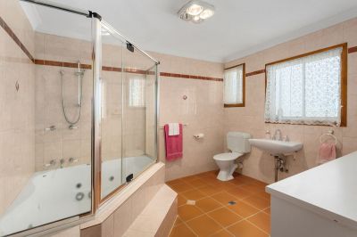 • Family bathroom with corner spa bath with shower