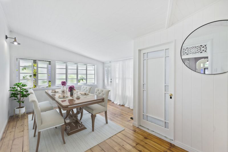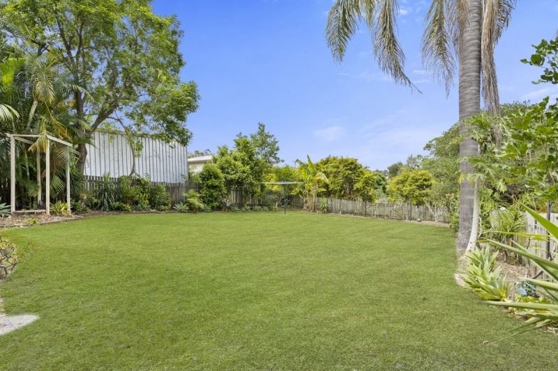 Outside, the meticulously landscaped garden features mature trees and lush tropical plants, offering a tranquil haven from the hustle and bustle of daily life. The private, flood-free backyard is ideal for children and pets to play, ensuring the perfect balance of space and serenity.