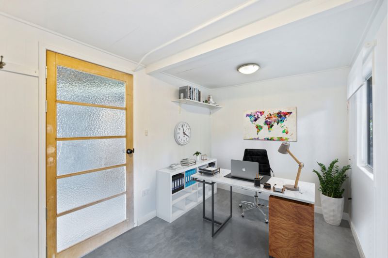 For those seeking peace and productivity, the home office, tucked beneath the house, provides a quiet escape with its private access—a space to focus and work free from distractions.