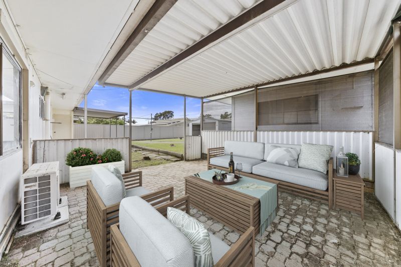 Inside the main home, a renovated kitchen awaits, offering a gas cooktop, pantry, dishwasher, and air conditioning, perfect for culinary enthusiasts. Adjacent is a large, air-conditioned lounge room and a separate dining area, ideal for gatherings. All bedrooms are generously sized and air-conditioned, with the master suite featuring a walk-in robe and ensuite. Outdoor living is a delight with a second pergola, a fully fenced yard, and a drive-through carport leading to a double shed complete with mezzanine storage.
